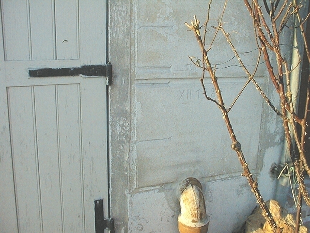 - Commentaires : Sur le côté d'une porte du garage d'une maison sur le quai, en amont de la mairie. Les repères de crue ont disparu.
