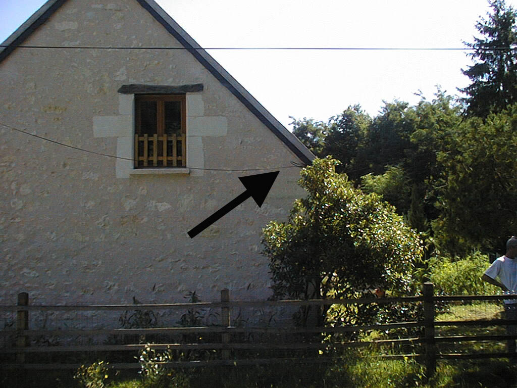 - Commentaires : Au hameau de "La Poterie", sur l'angle ouest de la maison faisant l'angle entre le chemin de halage et la rue de la poterie , coté amont. Sans date indiquée , le repère haut correspont sans doute à la crue de 1866