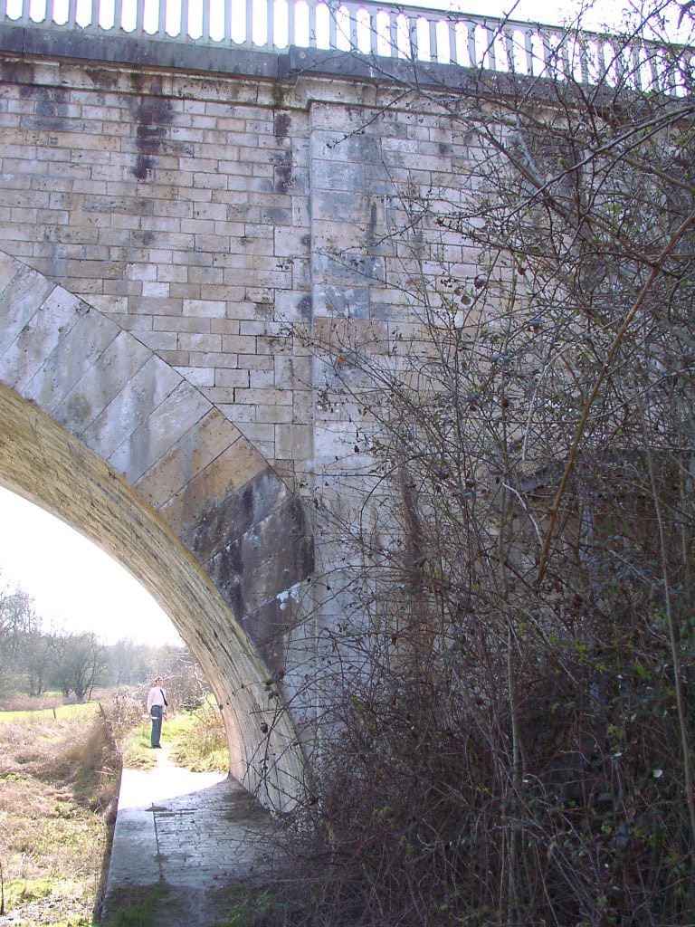 - Commentaires : Sur la culée rive droite, face amont, du pont sur le bras droit (à sec) du viaduc SNCF.