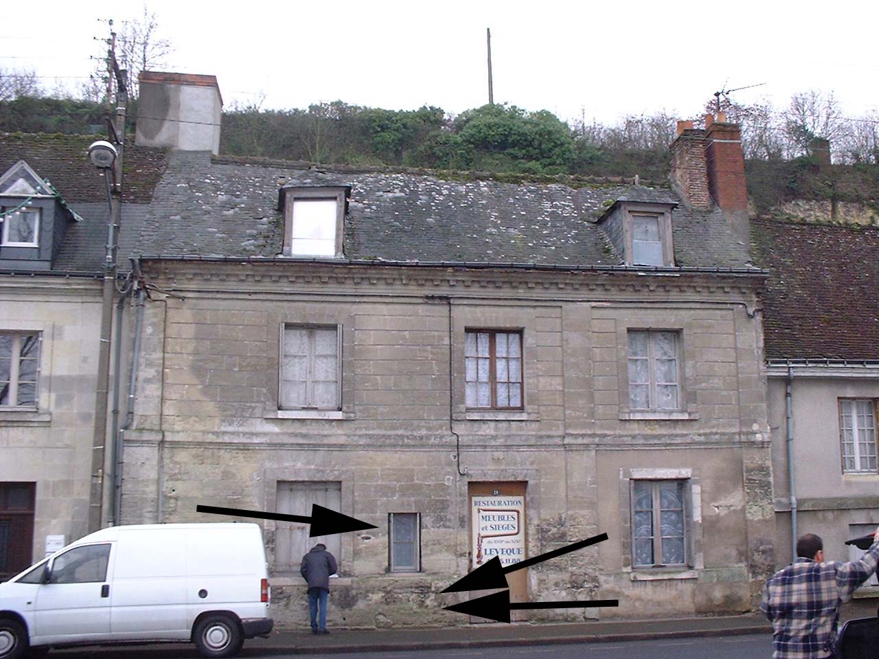 - Commentaires : Sur la facade d' une maison située au n°29, sur le quai, au lieu dit "le Bas Rocher", à 50 mètres à l'amont du restaurant avec un colombage . Ces repères sont mentionnés dans une étude réalisée en 1986 par BCEO et Sogreah pour le PPR Tours amont.