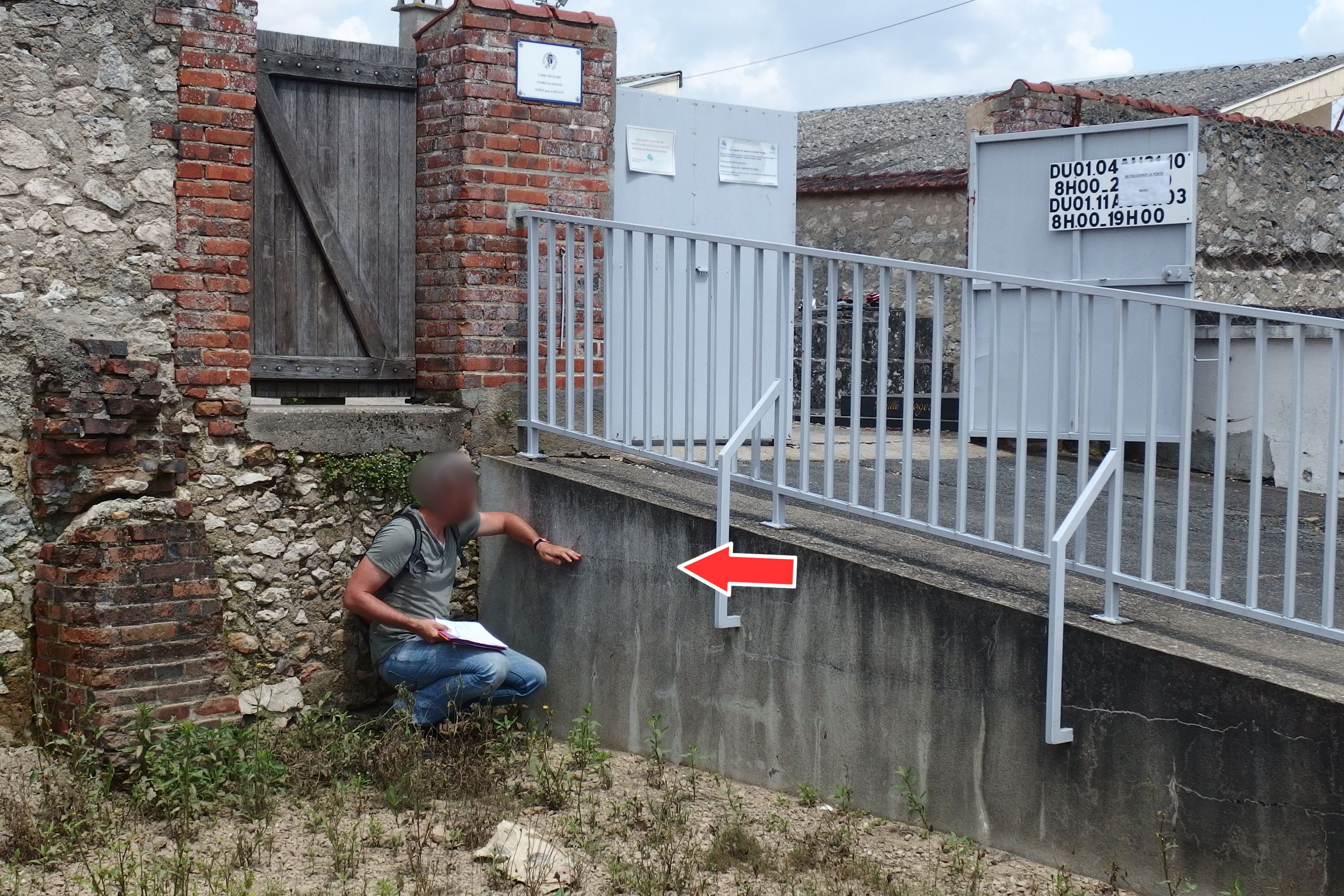 - Commentaires : Laisse de crue sur le côté gauche de la rampe, à - 36 cm sous l’extrémité la plus haute de la rampe d'accès.