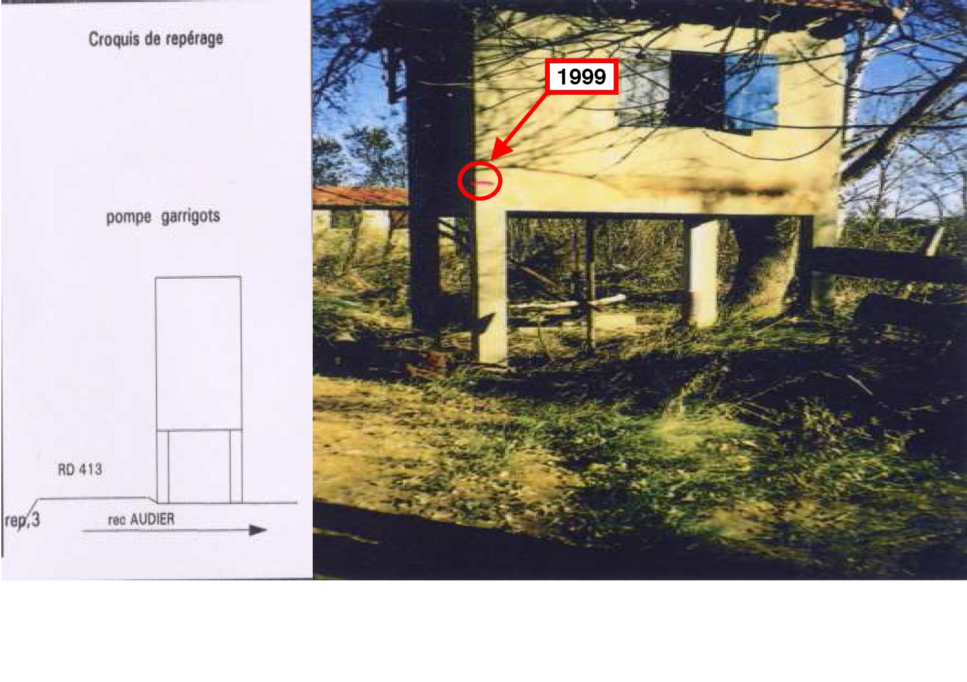 - Commentaires : Angle du bâti de la pompe - rive gauche. Q = 4000m3 / seconde Ex N° 087-F, Etude 1996-1999. Date d'enquete : 21/12/1999