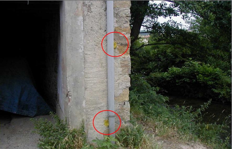 - Commentaires : Coin bâtiment agricole - rive gauche. trait de peinture disparu. Date d'enquete : 28/11/2001