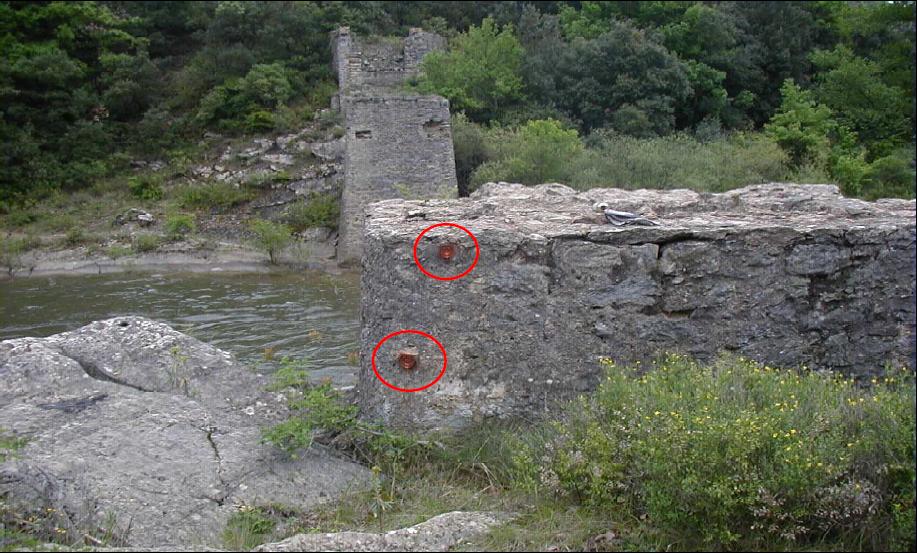 - Commentaires : culée détruite rive gauche - amont. ancienne passerelle détruite. Date d'enquete : 03/05/2002