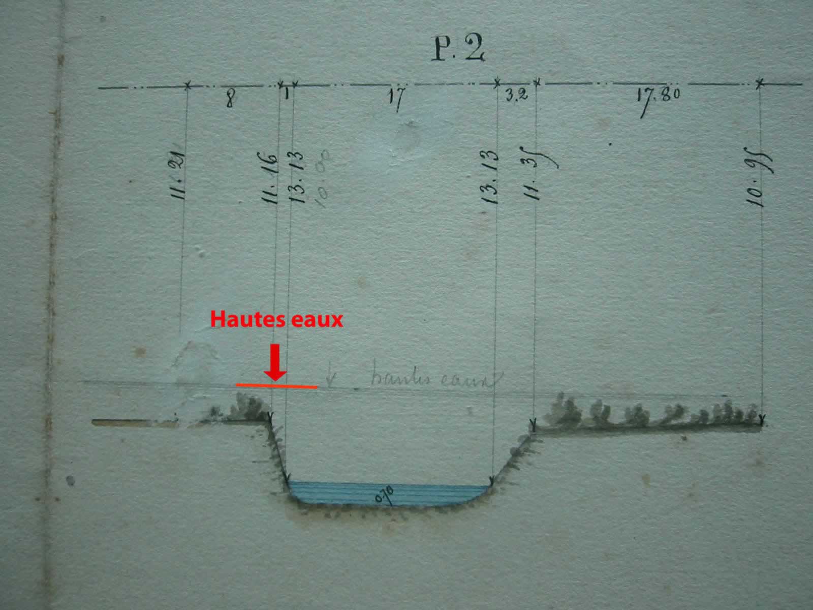 - Commentaires : Projet de construction du pont de Seigne – vers 1880. L’élévation du pont et les PT comportent une indication des Hautes Eaux qui se situe à 3,60 m audessus des basses eaux, soit environ 1,20m au-dessus des berges. Date d'enquete : 01/01/1880