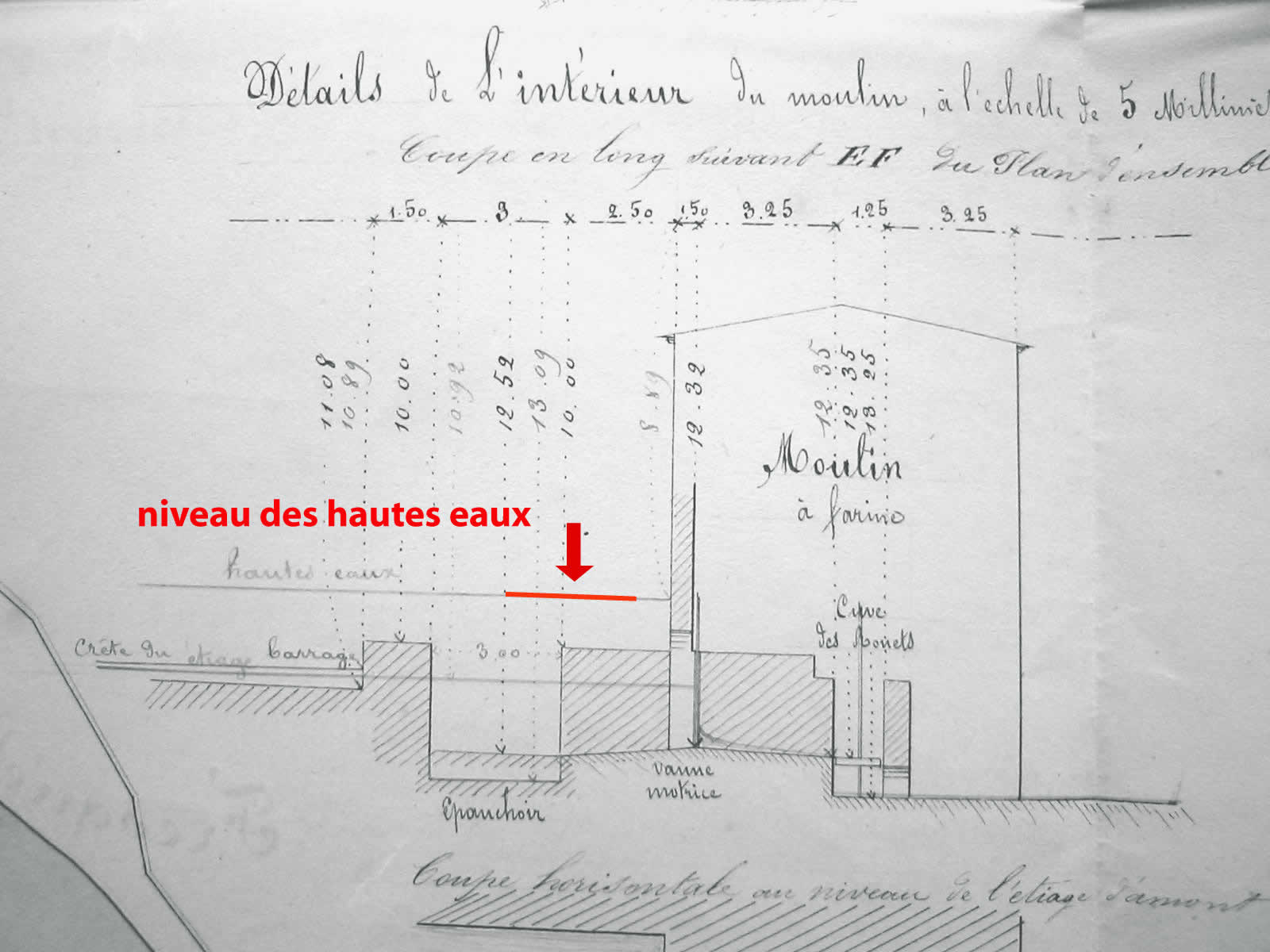 - Commentaires : Barrage et prise d’eau du moulin de la Seigne. Le niveau des hautes eaux est à + 1,10 m par rapport à la vanne de l’épanchoir (cf niveau de 2004 à + 0,80 m). Date d'enquete : 09/09/1844