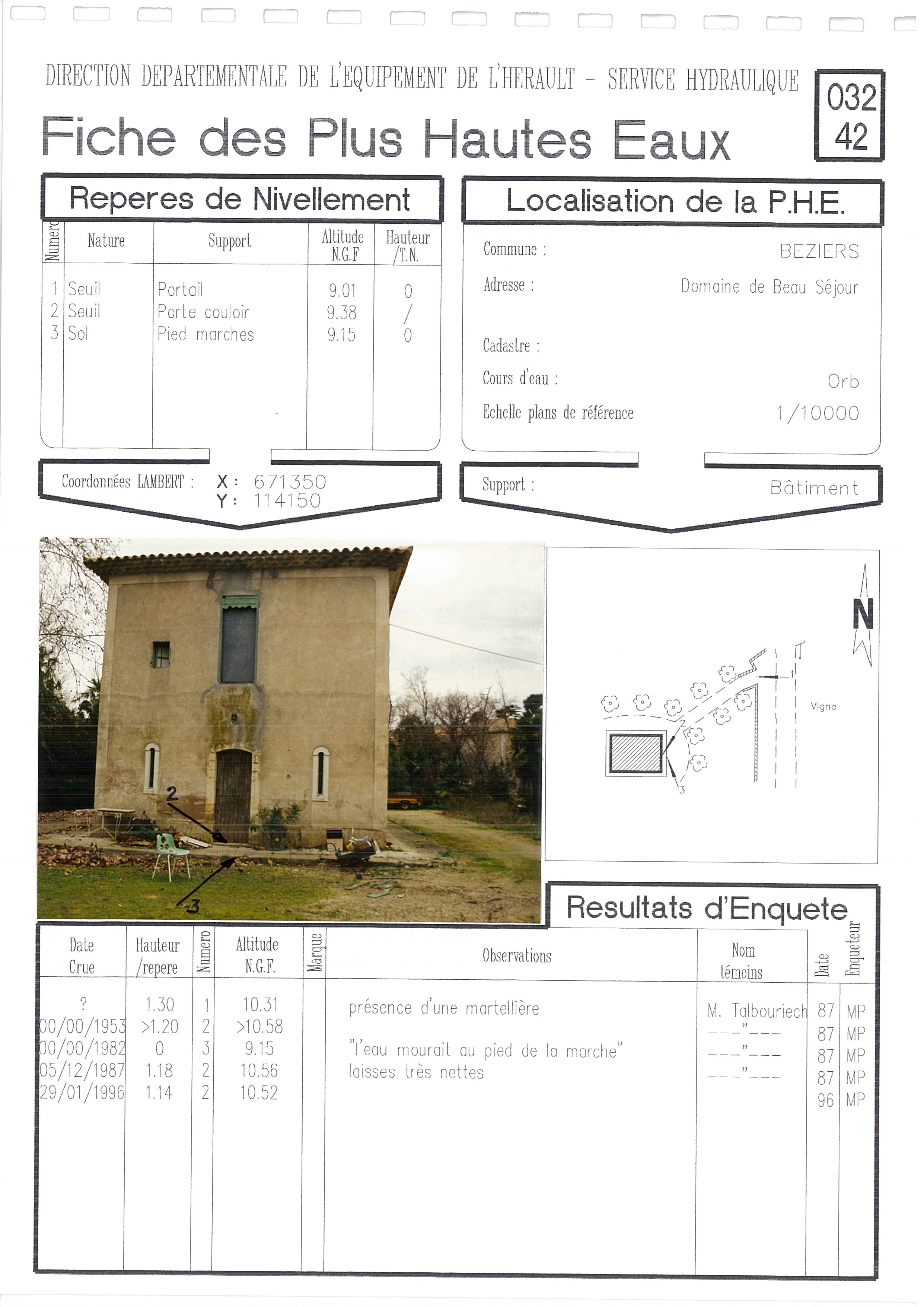 - Nature du repère : Laisse d'inondation