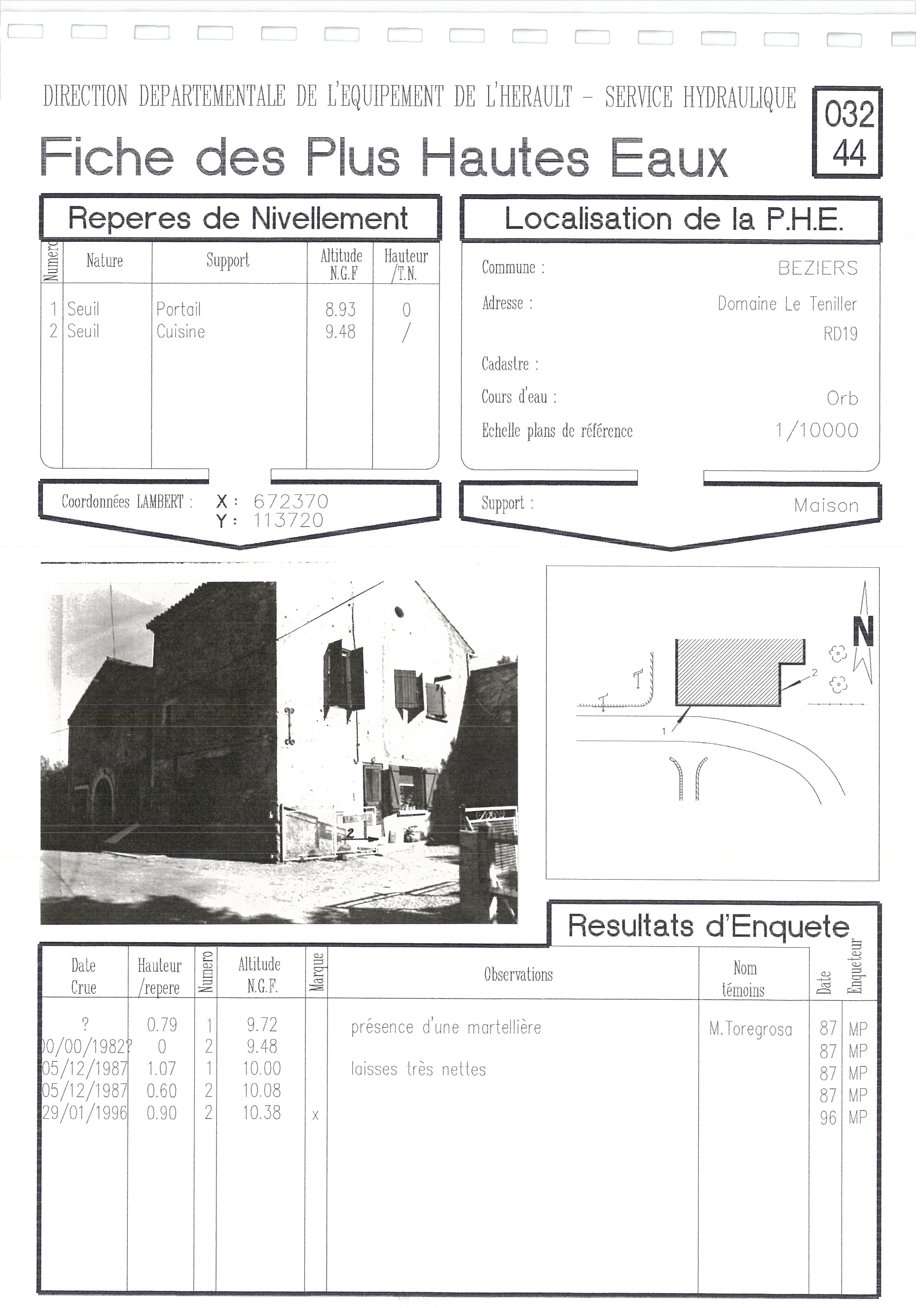 - Nature du repère : Laisse d'inondation