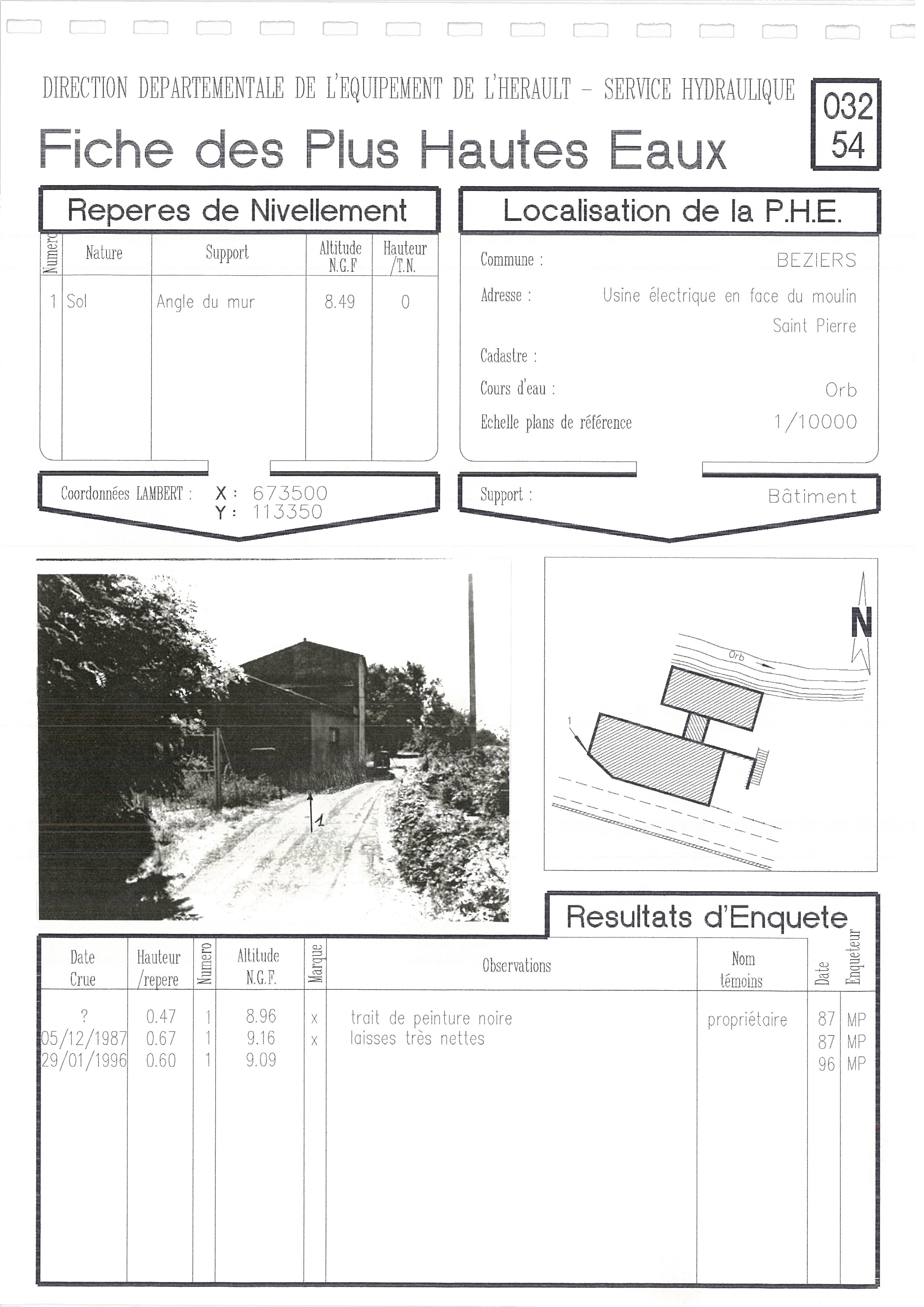 - Nature du repère : Laisse d'inondation