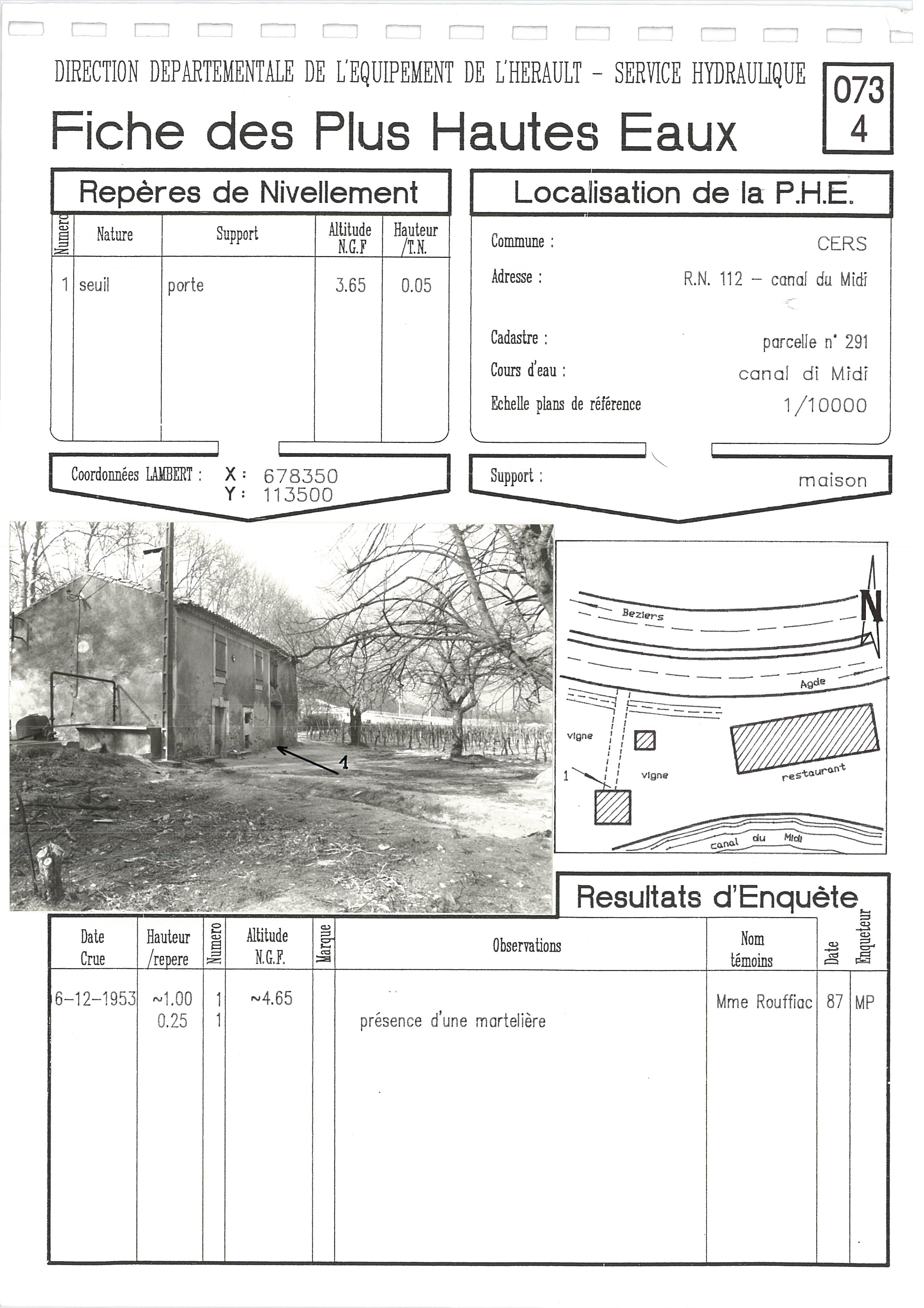 - Date du repère : 6 Décembre 1953