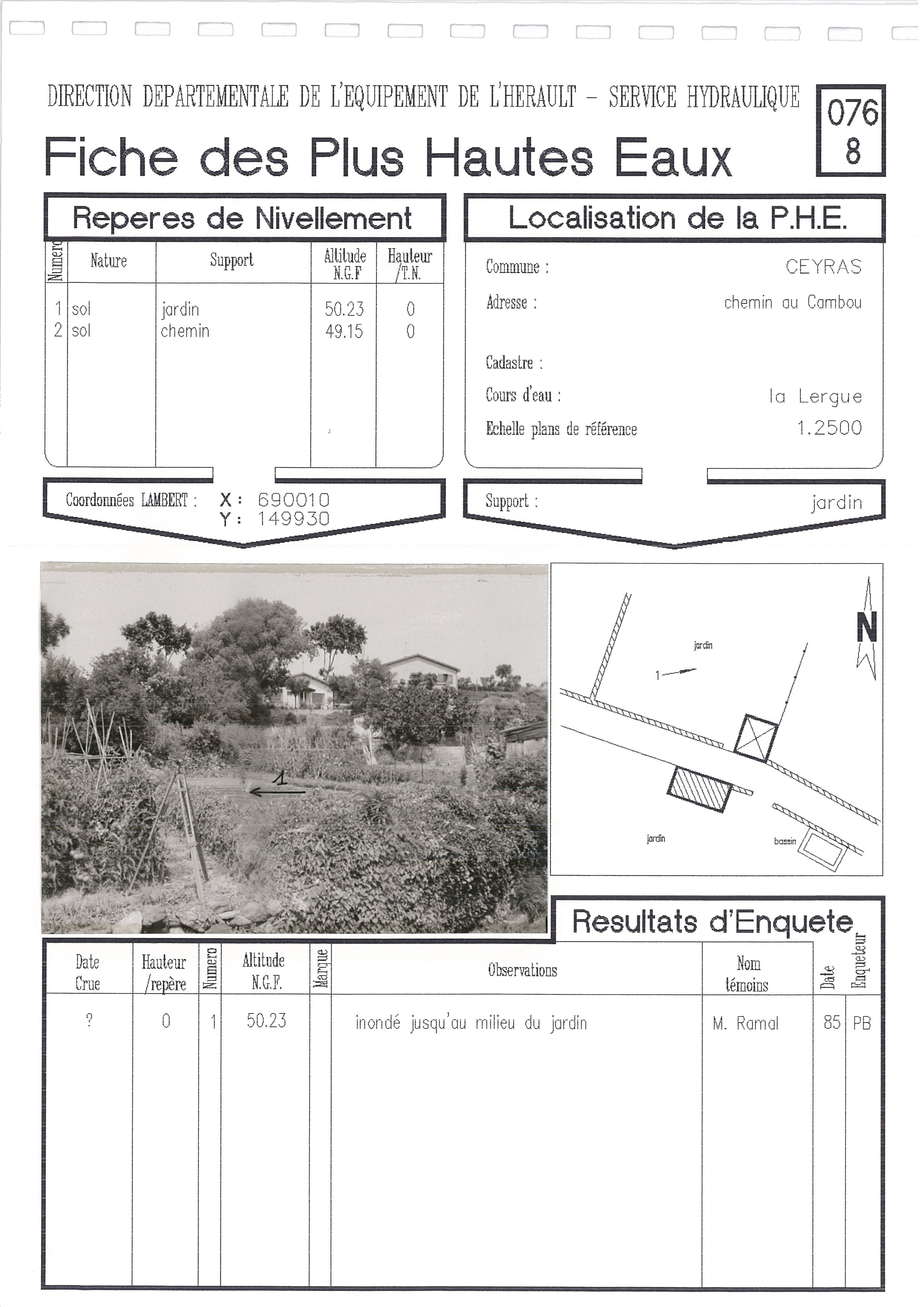 - Nature du repère : Laisse d'inondation