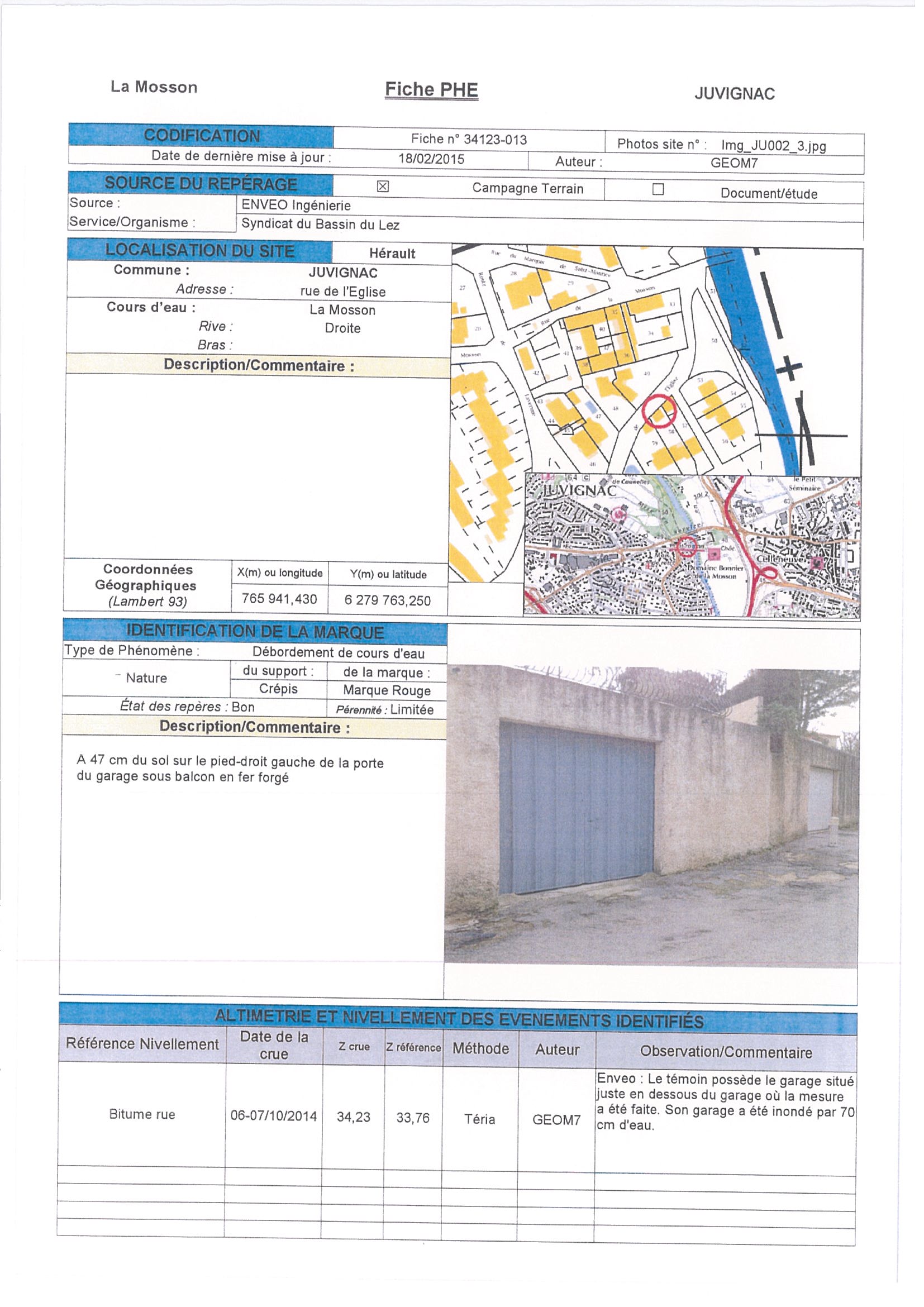 - Nature du repère : Laisse d'inondation