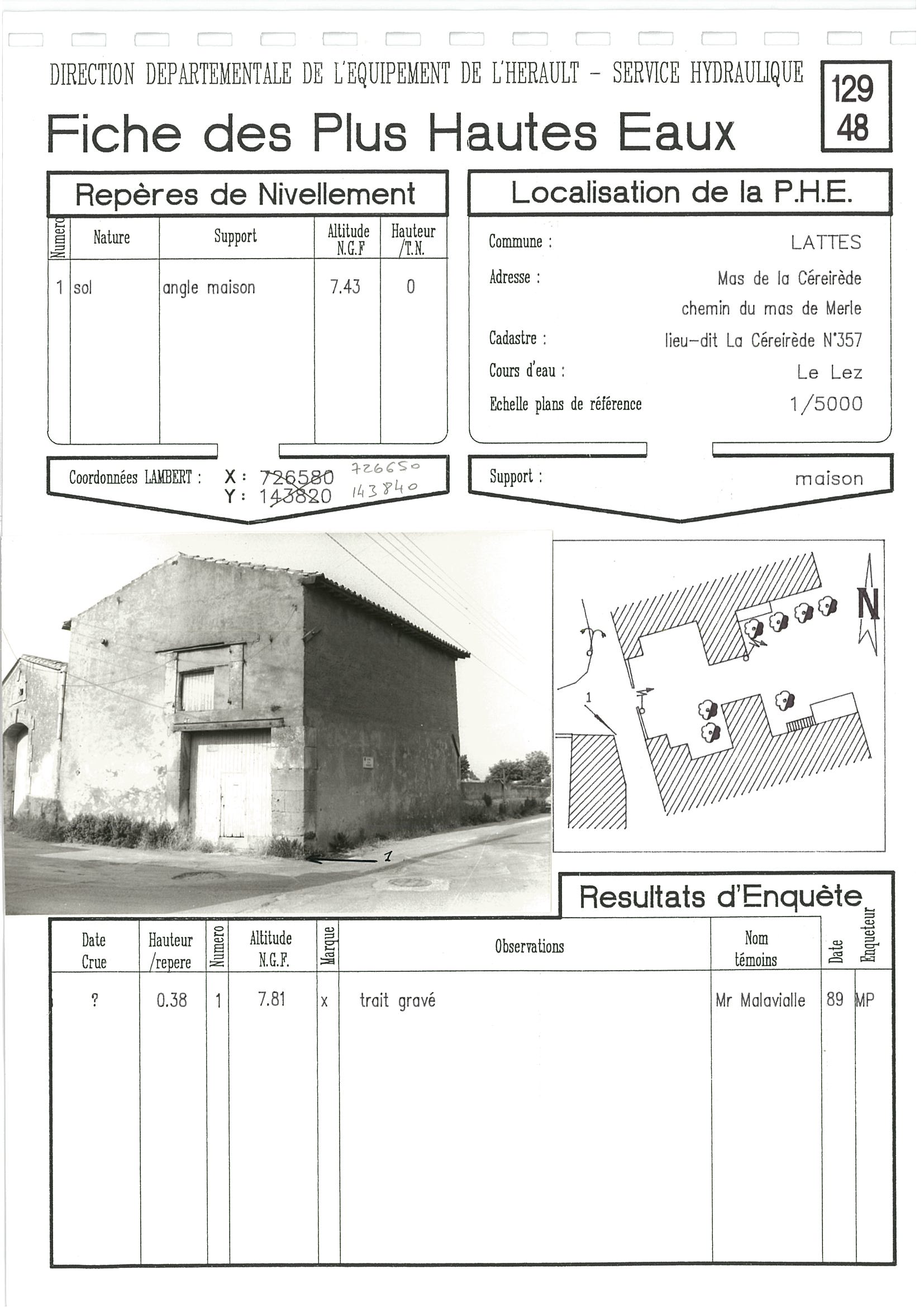 - Nature du repère : Laisse d'inondation