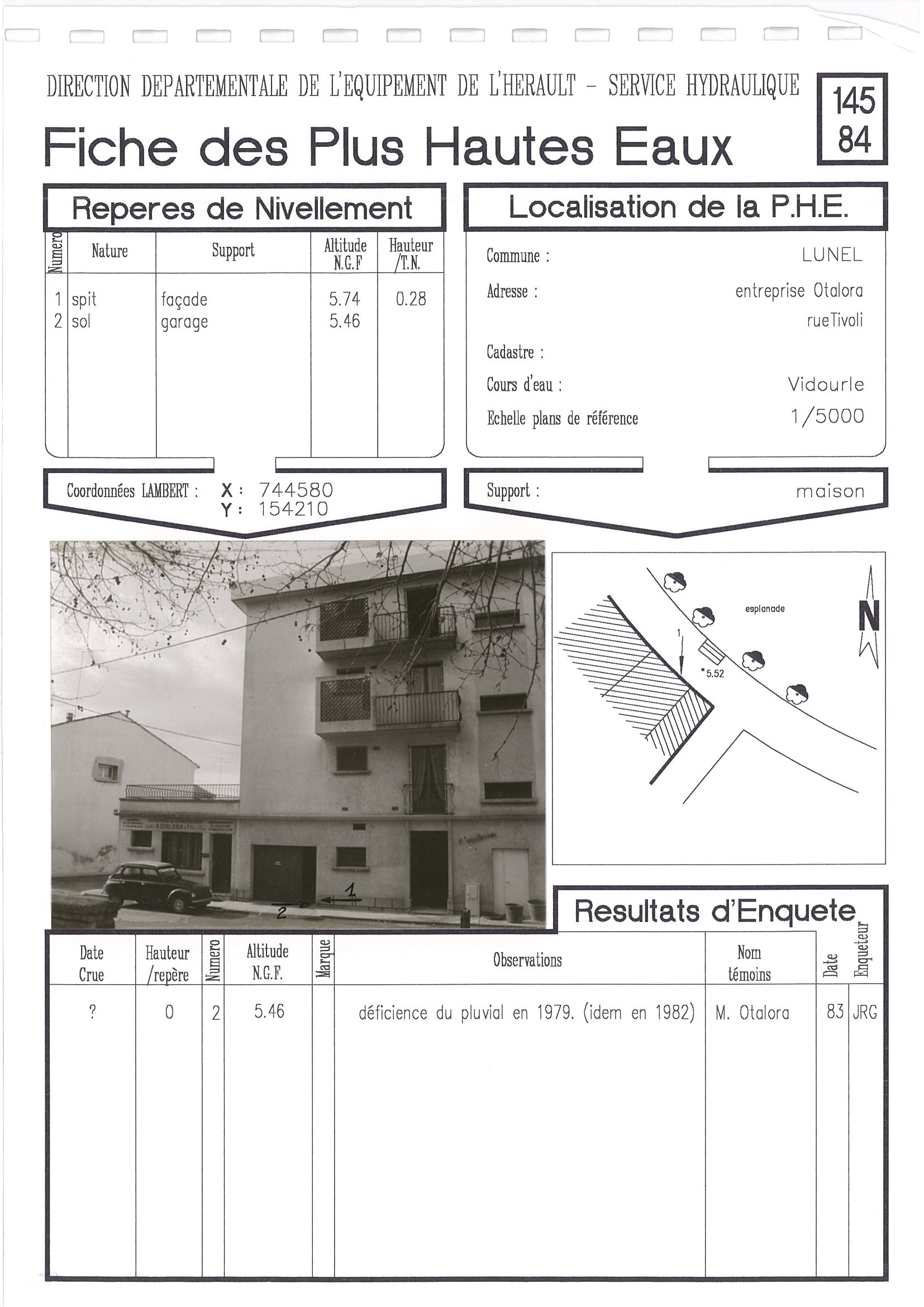 - Nature du repère : Laisse d'inondation
