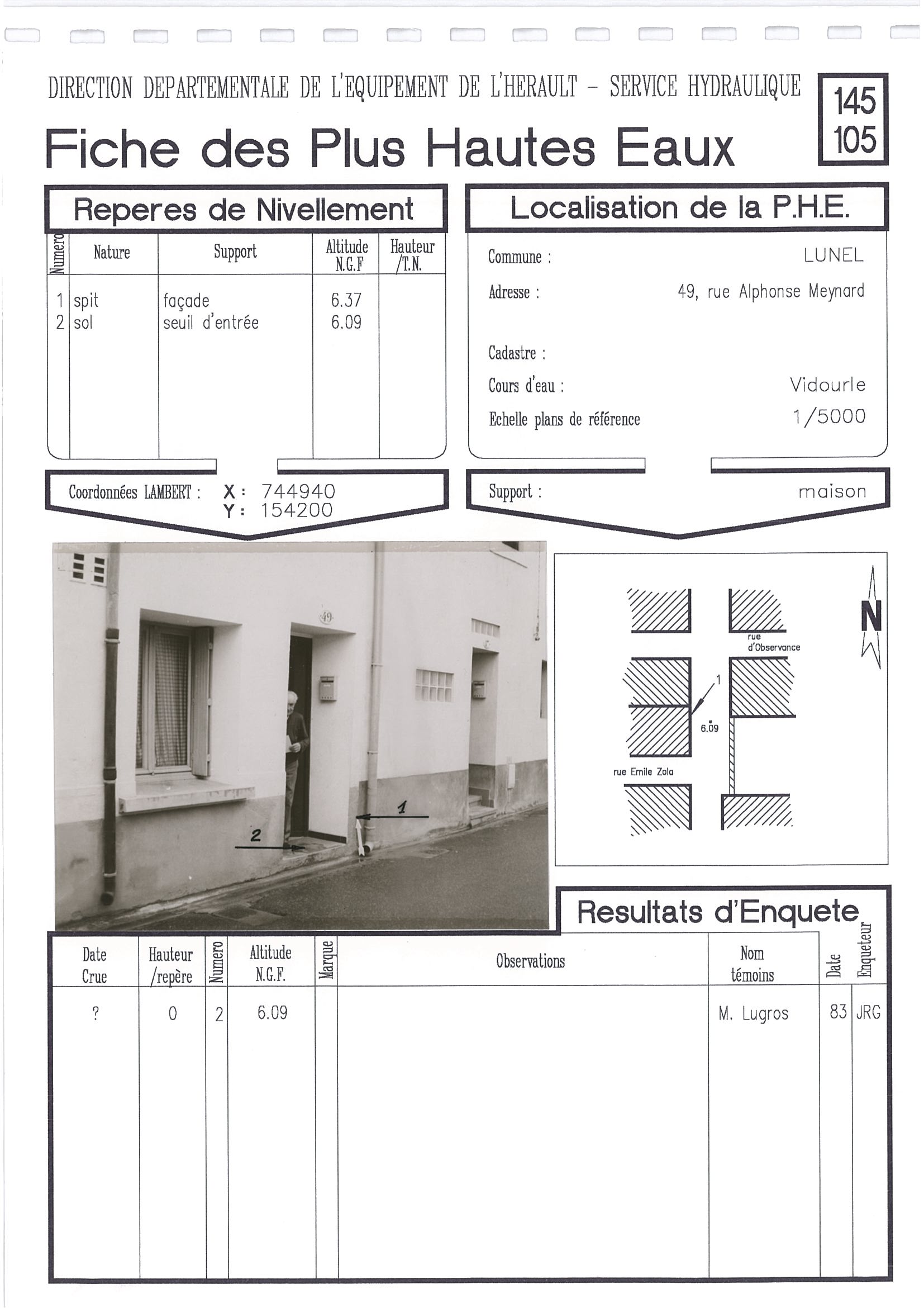 - Nature du repère : Laisse d'inondation