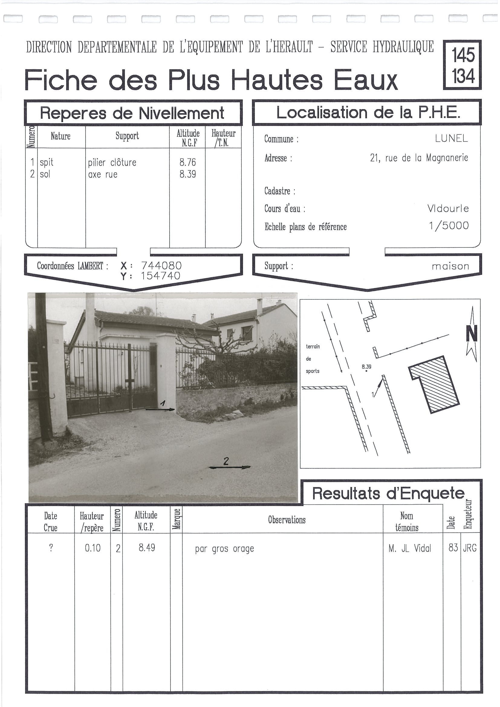 - Nature du repère : Laisse d'inondation