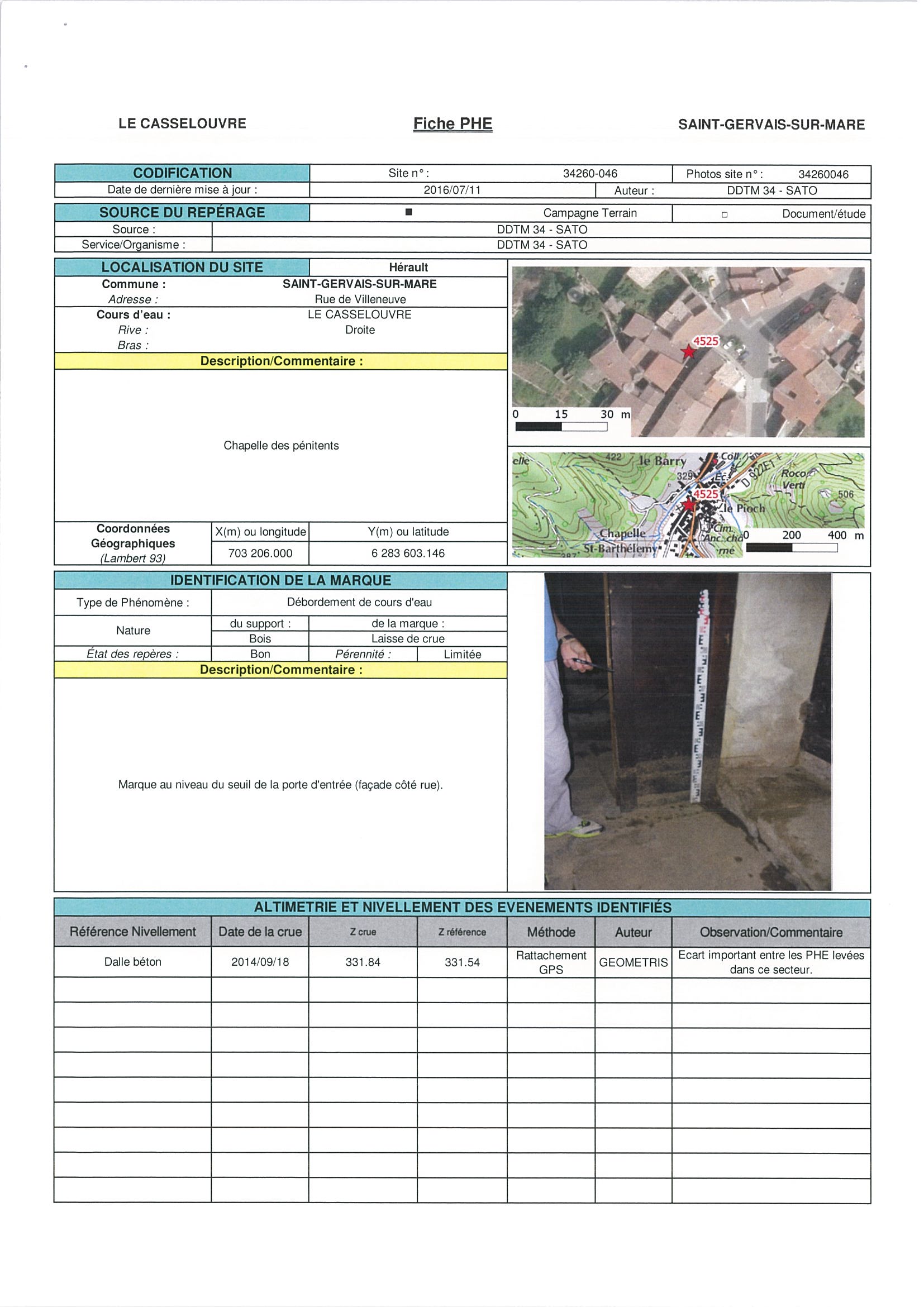 - Nature du repère : Laisse d'inondation