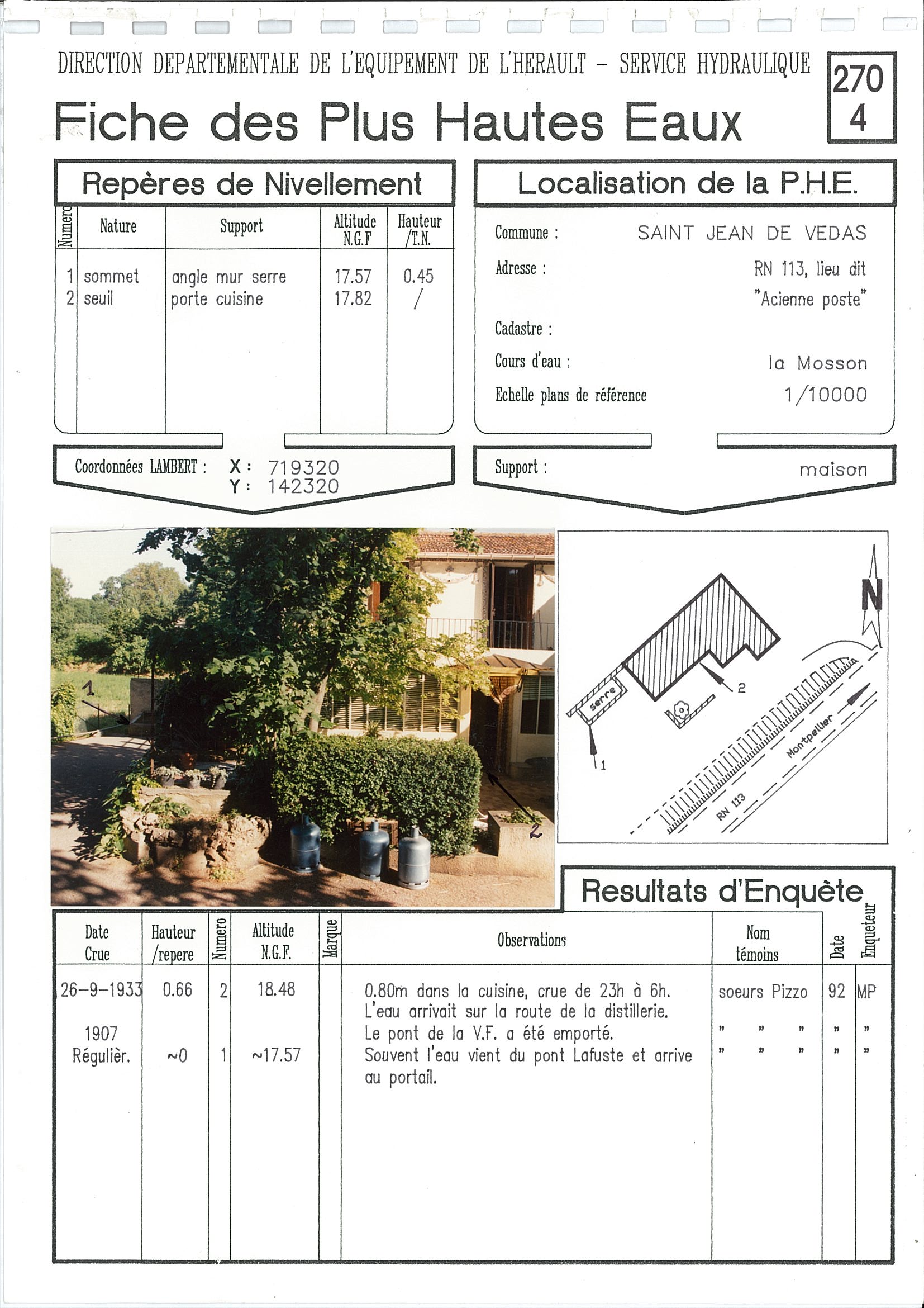 - Date du repère : 26 Septembre 1933