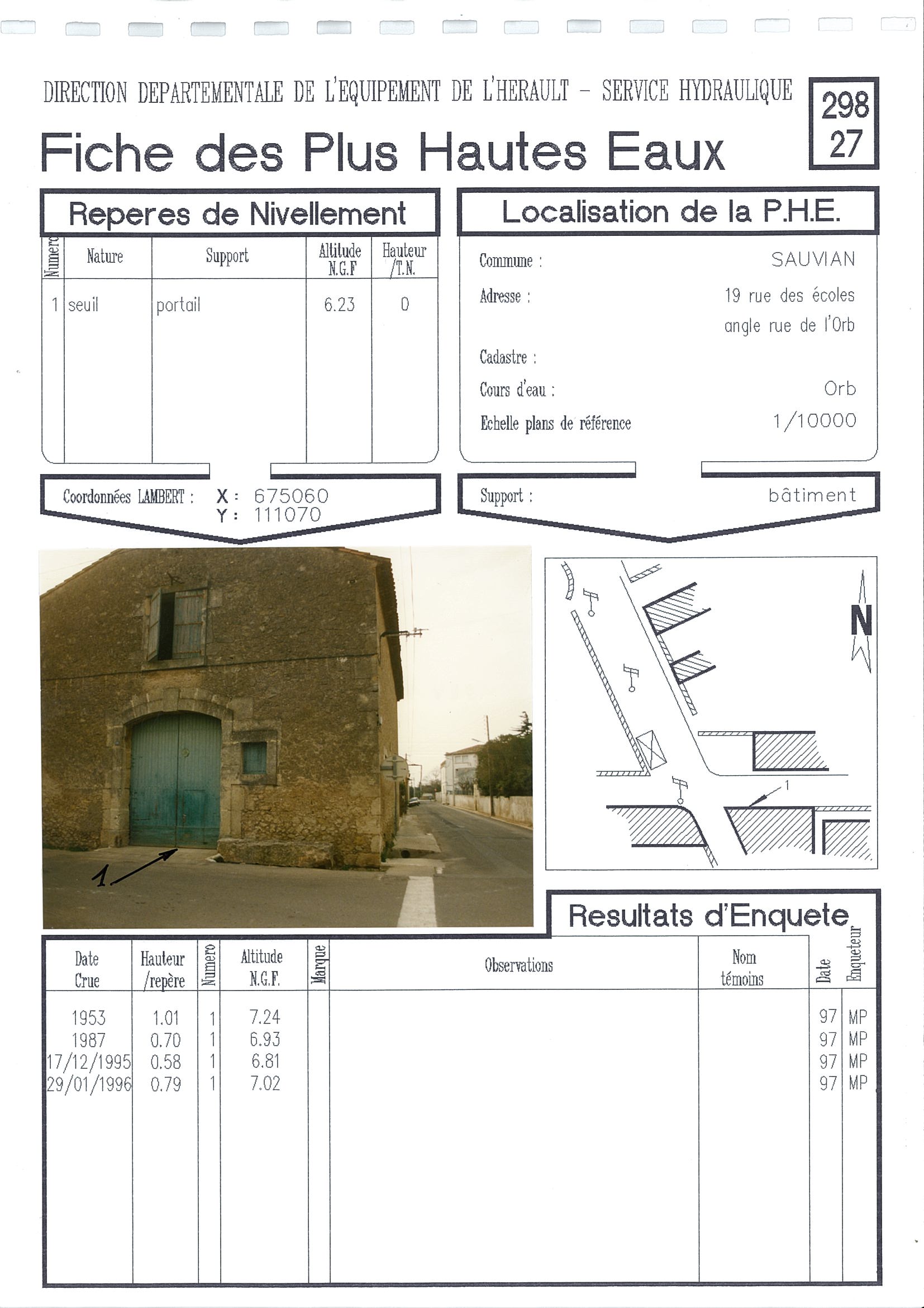 - Date du repère : 29 Janvier 1996