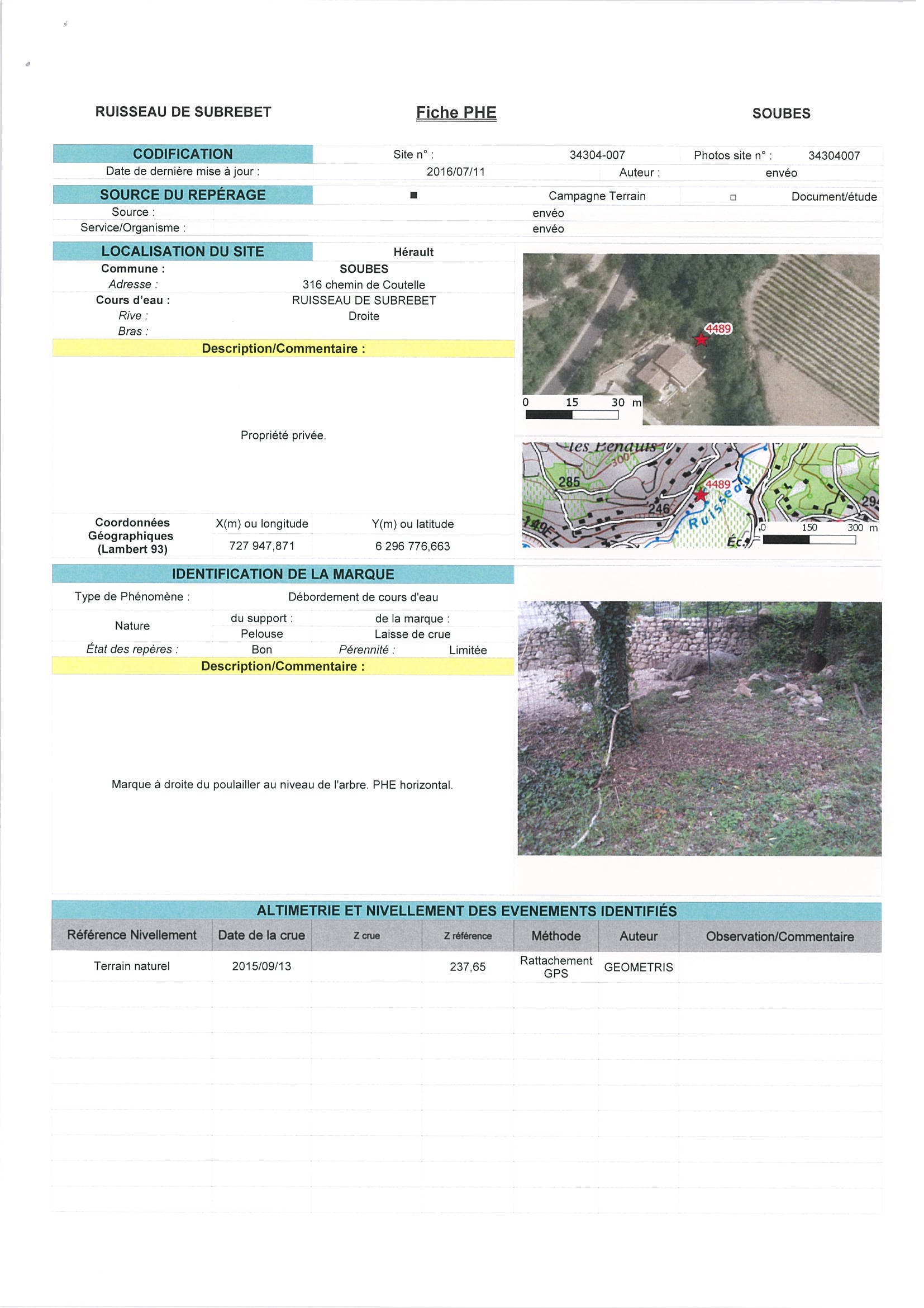 - Nature du repère : Laisse d'inondation