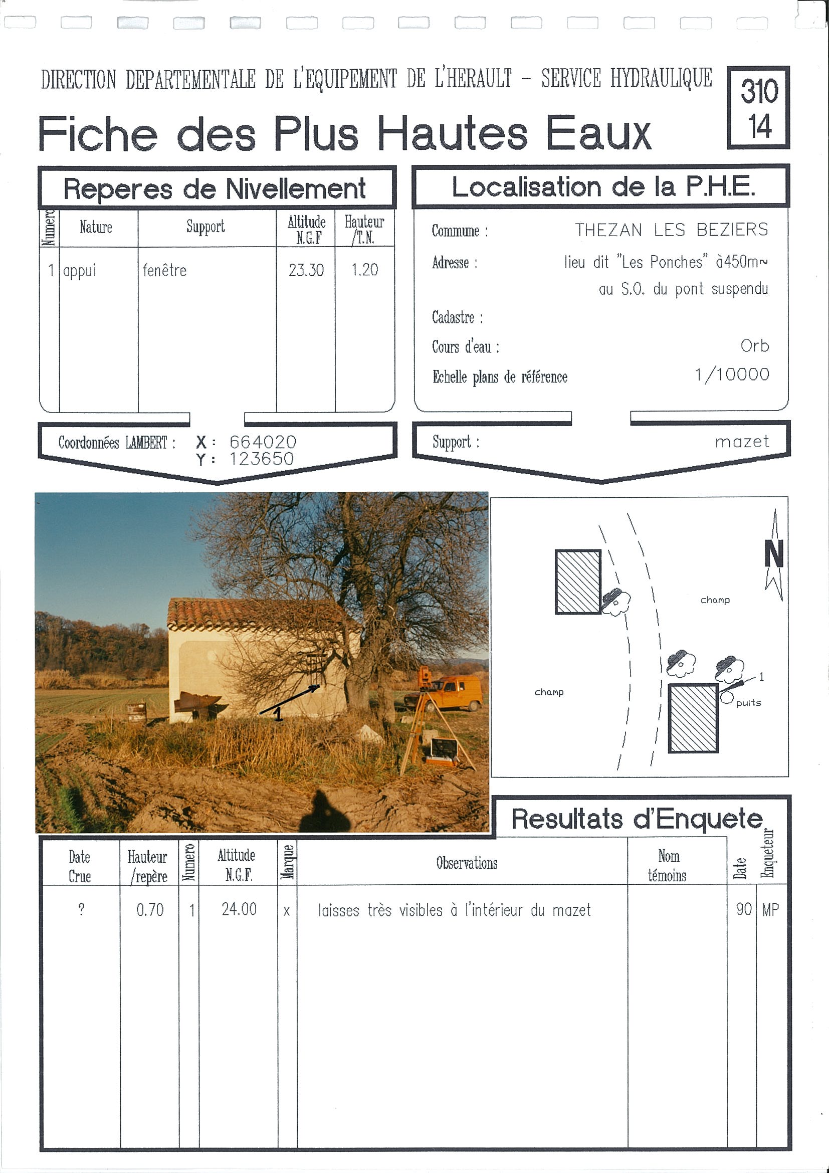 - Nature du repère : Laisse d'inondation