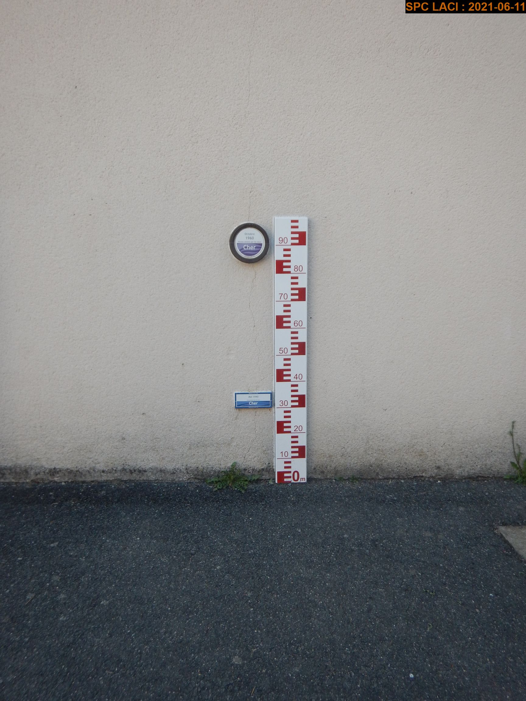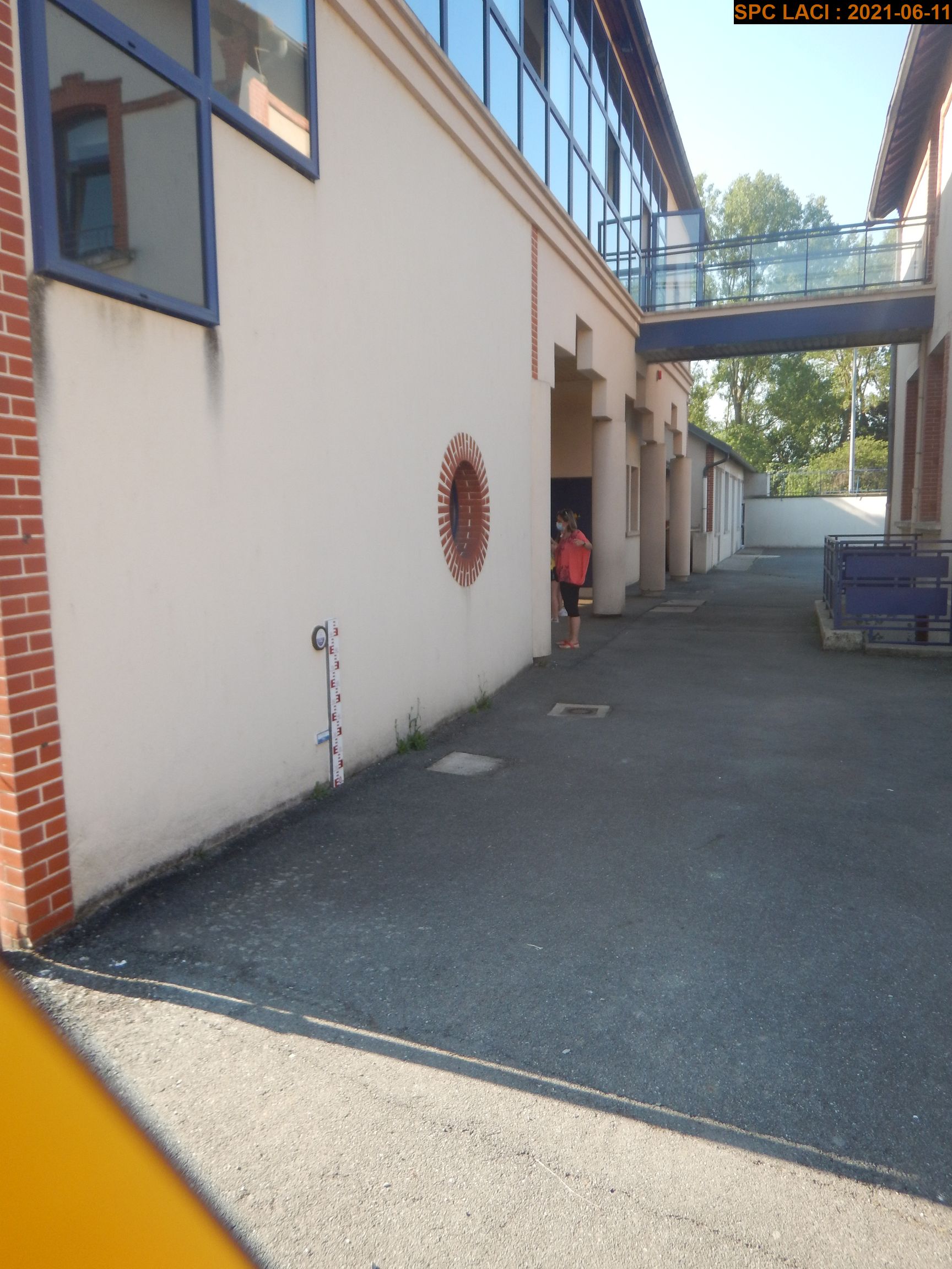 - Commentaires : Totem de crues composé d'une échelle et de 2 repères de crues. Il est situé sur la façade du bâtiment à proximité de l'entrée dans la cour de l'école primaire Saint-Exupéry.