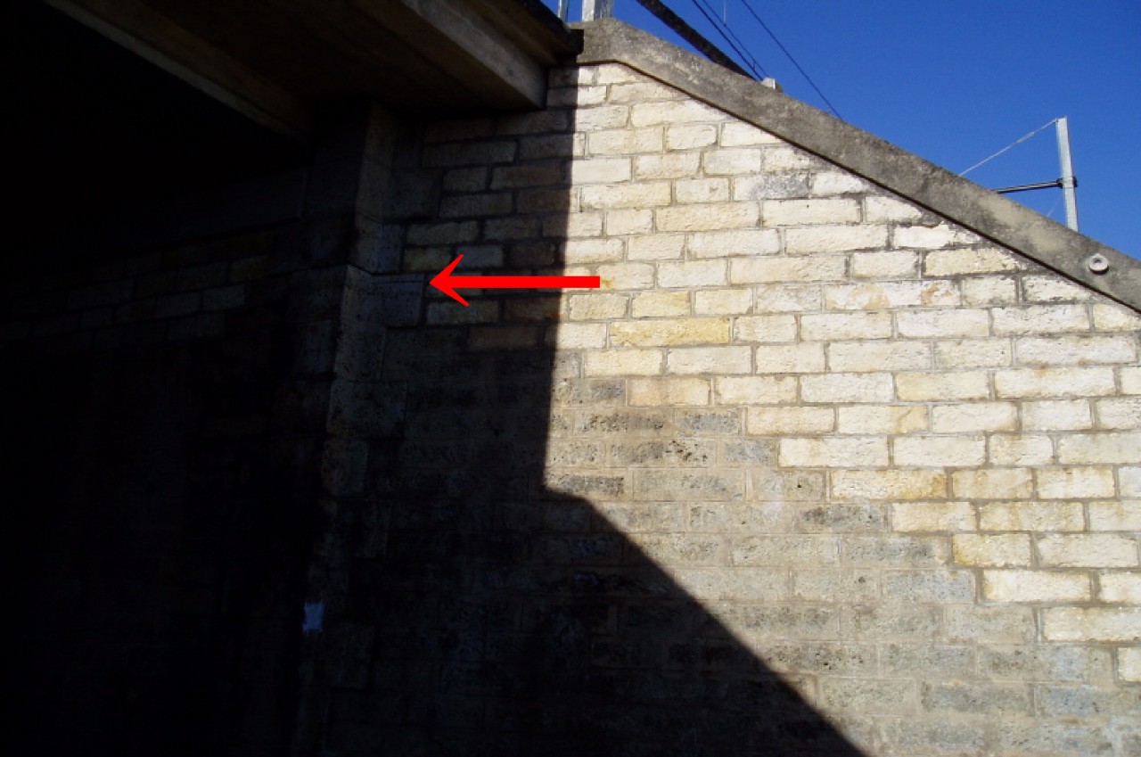 • Commentaires :  commentaires photo : Vue générale,Zoom sur le repère qui est placé sur le côté opposé à la Garonne du passage sous la voie ferrée. Ce passage porte- côté Garonne- un repère de la crue de juin 1875.