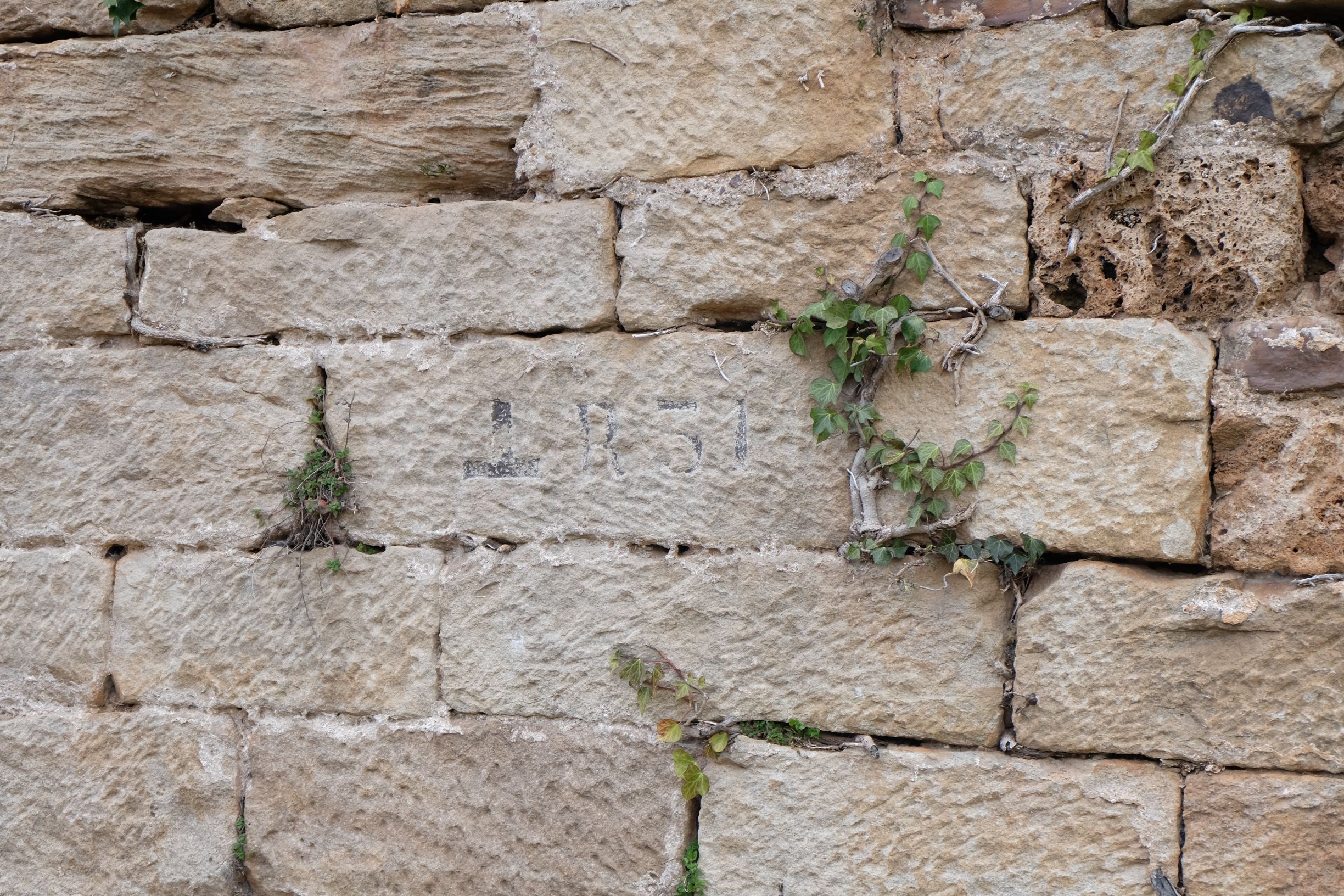La marque gravée dans la pierre se présente sous le forme d'un "T" inversé surmonté de l'inscription R31.