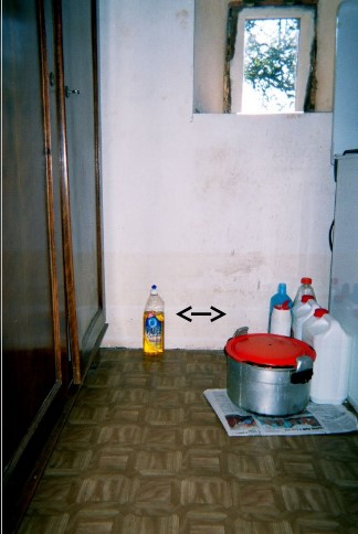 - Commentaires sur le nivellement : 2001. Intérieur. Rez-de-chaussée de la maison. Marque encore visible (25 cm à partir du sol, soit niveau du liquide-vaisselle sur la photo du 11/10/2001)